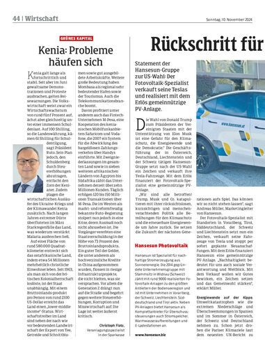 Statement der Hansesun-Gruppe zur US-Wahl: Der Fotovoltaik-Spezialist verkauft seine Teslas und realisiert mit dem Erlös gemeinnützige PV-Anlage.
