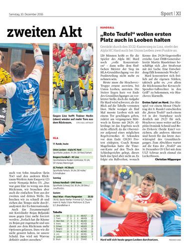 Gestärkt durch den 33:22-Kantersieg in Linz, strebt der Alpla HC Hard auch bei Union Leoben zwei Punkte an.