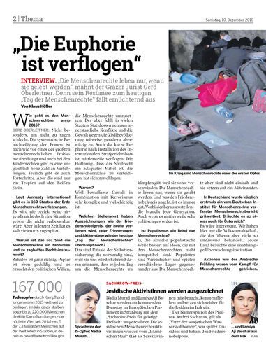 INTERVIEW. „Die Menschenrechte leben nur, wenn sie gelebt werden“, mahnt der Grazer Jurist Gerd Oberleitner. Denn sein Resümee zum heutigen „Tag der Menschenrechte“ fällt ernüchternd aus. Von Klaus Höfler