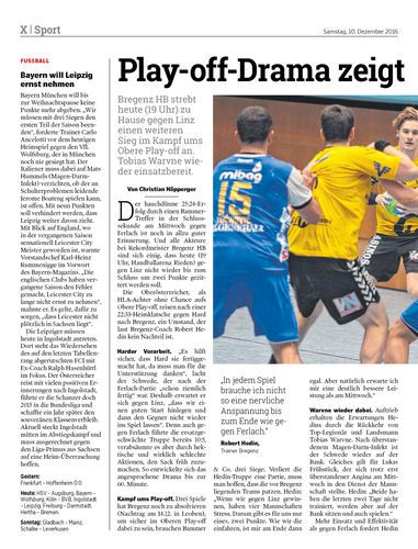 Bregenz HB strebt heute (19 Uhr) zu Hause gegen Linz einen weiteren Sieg im Kampf ums Obere Play-off an. Tobias Warvne wieder einsatzbereit.