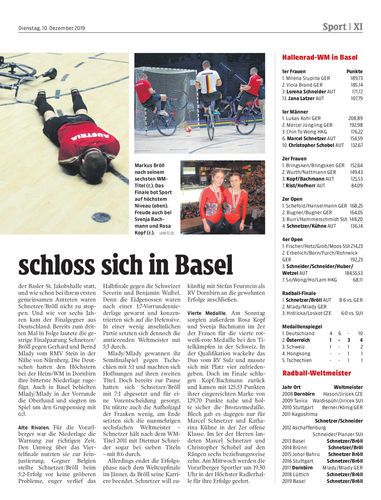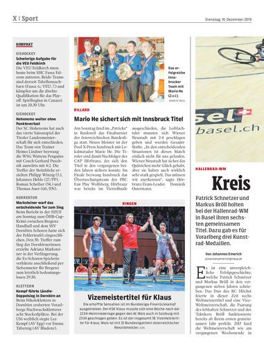 Patrick Schnetzer und Markus Bröll holten bei der Hallenrad-WM in Basel ihren sechsten gemeinsamen Titel. Dazu gab es für Vorarlberg drei Kunstrad-Medaillen.