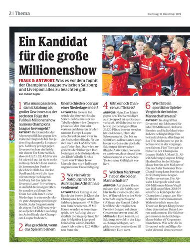 frage & antwort. Was es vor dem Tophit der Champions League zwischen Salzburg und Liverpool alles zu beachten gilt. Von Hubert Gigler