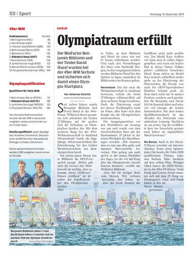 Der Wolfurter Benjamin Bildstein und der Tiroler David Hussl wurden bei der 49er-WM Sechste und sicherten sich damit einen Olympia-Startplatz.