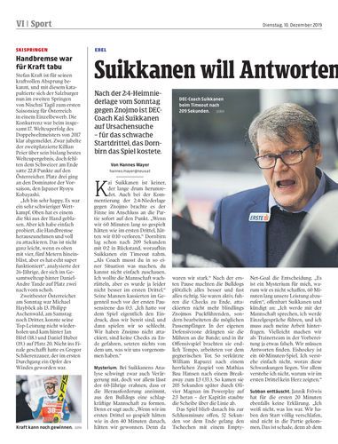 Nach der 2:4-Heimniederlage vom Sonntag gegen Znojmo ist DEC-Coach Kai Suikkanen auf Ursachensuche – für das schwache Startdrittel, das Dornbirn das Spiel kostete.