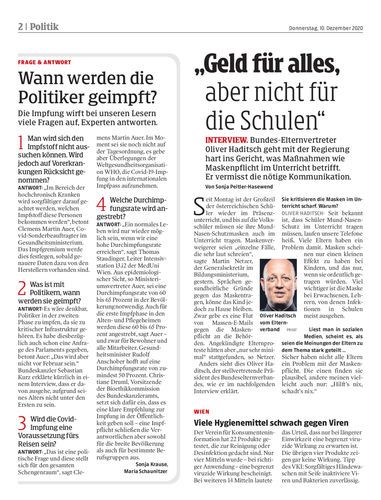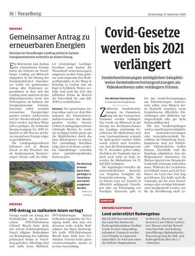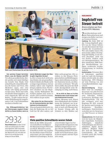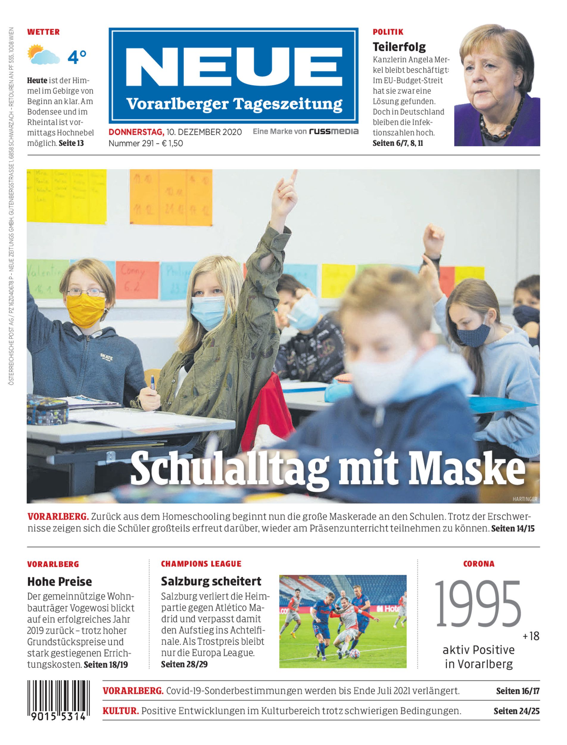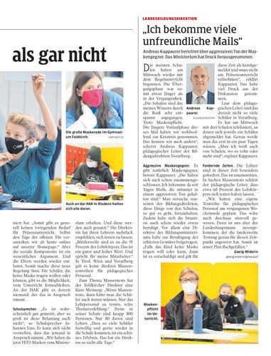 Vorarlberg. Zurück aus dem Homeschooling beginnt nun die große Maskerade an den Schulen. Trotz der Erschwernisse zeigen sich die Schüler großteils erfreut darüber, wieder am Präsenzunterricht teilnehmen zu können. Seiten 14/15