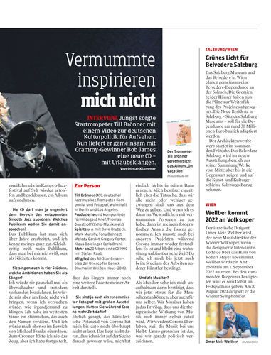 Jüngst sorgte Startrompeter Till Brönner mit einem Video zur deutschen Kulturpolitik für Aufsehen. Nun liefert er gemeinsam mit Grammy-Gewinner Bob James eine neue CD – mit Urlaubsklängen. Von Otmar Klammer