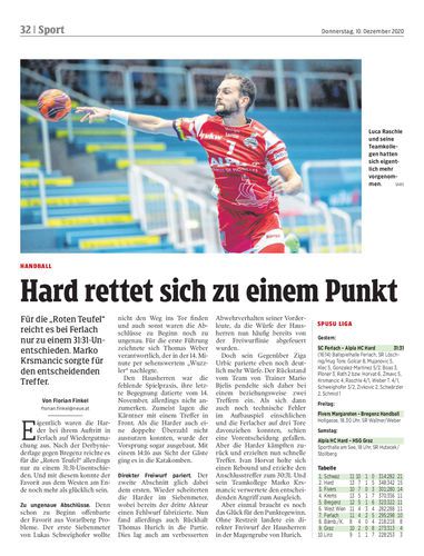 Für die „Roten Teufel“ reicht es bei Ferlach nur zu einem 31:31-Unentschieden. Marko Krsmancic sorgte für den entscheidenden Treffer.