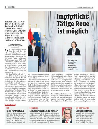 Beraten vor Strafen – das ist die Devise in Sachen Impfpflicht. Die Details stehen jetzt fest, der Entwurf ging gestern in die Begutachtung. „Sünder“ sollen sich „freiimpfen“ können.
