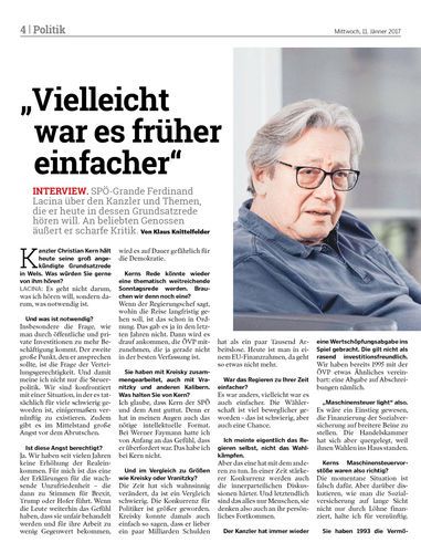 SPÖ-Grande Ferdinand Lacina über den Kanzler und Themen, die er heute in dessen Grundsatzrede hören will. An beliebten Genossen äußert er scharfe Kritik. Von Klaus Knittelfelder