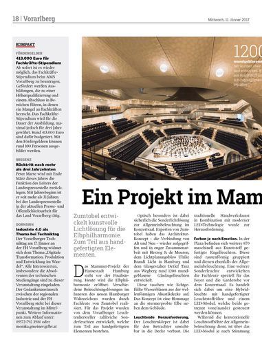 Zumtobel entwickelt kunstvolle Lichtlösung für die Elbphilharmonie. Zum Teil aus handgefertigten Elementen.
