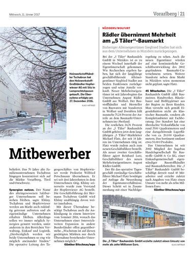 Holzwerkstoffhändler Tschabrun übernimmt Salzburger Mitbewerber.Hopferwieser war auf der Suche nach einem starken Partner. Der Name des 70-Mitarbeiter-Unternehmens bleibt bestehen.