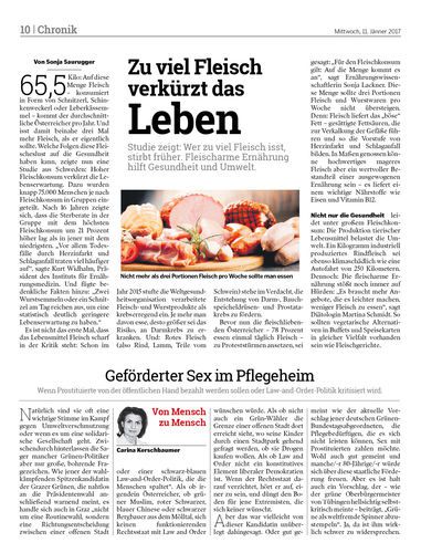 Studie zeigt: Wer zu viel Fleisch isst, stirbt früher. Fleischarme Ernährung hilft Gesundheit und Umwelt.