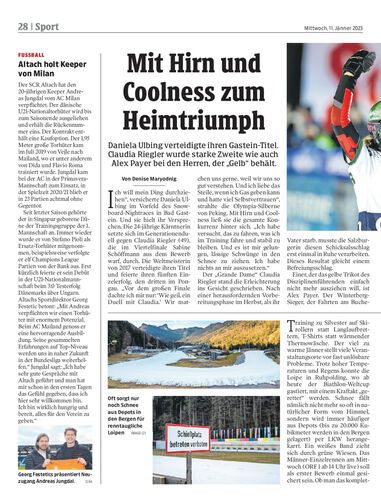 Daniela Ulbing verteidigte ihren Gastein-Titel. Claudia Riegler wurde starke Zweite, wie auch Alex Payer bei den Herren, der „Gelb“ behält.