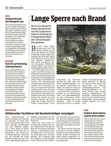 Nach Lkw-Brand im Brentenbergtunnel auf der Tauernautobahn in Salzburg am Freitagabend bleibt der Tunnel längere Zeit gesperrt.