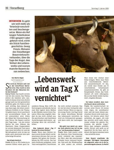 Interview. Es geht um weit mehr als Veterinärvorschriften und Seuchengesetze. Wenn ein Hof wegen Tuberkulose (TBC) gesperrt oder gekeult wird, stirbt ein Stück Familiengeschichte. Georg Freuis, Obmann des Vorarlberger Braunviehzuchtverbandes, über die Tage der Angst, den Verlust des Lebenswerks und warum manche Bauern daran zerbrechen.