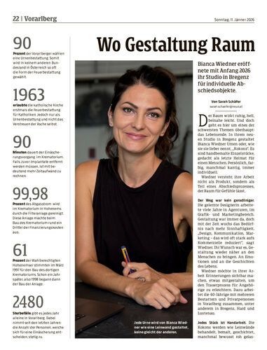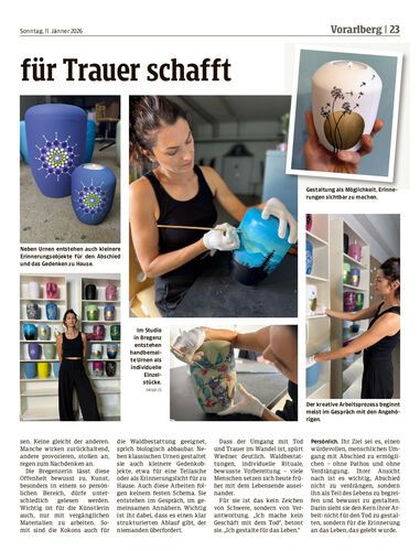 Bianca Wiedner eröffnete mit Anfang 2026 ihr Studio in Bregenz für individuelle Abschiedsobjekte.