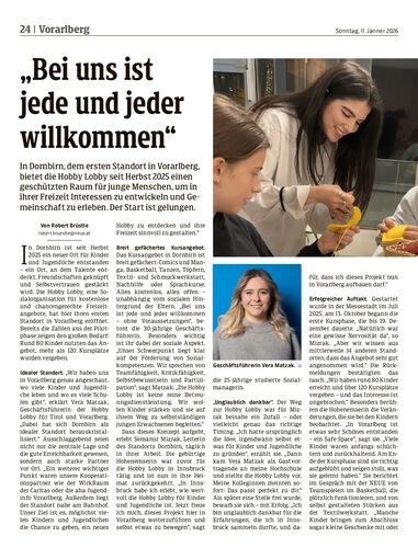 In Dornbirn, dem ersten Standort in Vorarlberg, bietet die Hobby Lobby seit Herbst 2025 einen geschützten Raum für junge Menschen, um in ihrer Freizeit Interessen zu entwickeln und Gemeinschaft zu erleben. Der Start ist gelungen.