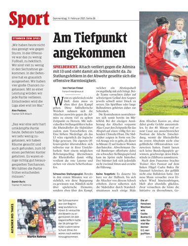 Spielbericht. Altach verliert gegen die Admira mit 1:3 und steht damit als Schlusslicht da. Zu Stellungsfehlern in der Abwehr gesellte sich die offensive Harmlosigkeit.