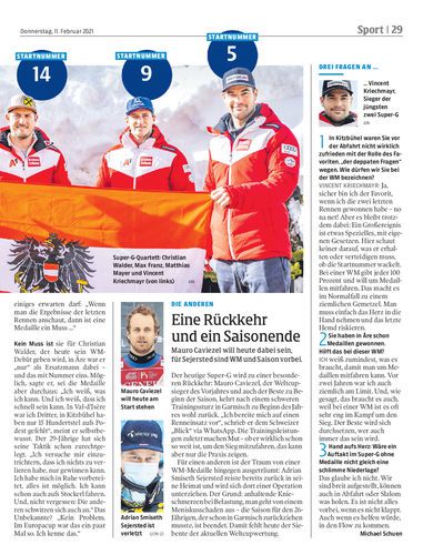 Mauro Caviezel will heute dabei sein, für Sejersted sind WM und Saison vorbei.