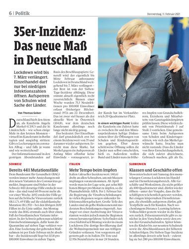 Lockdown wird bis 7. März verlängert. Einzelhandel darf nur bei niedrigen Infektionszahlen öffnen. Aufsperren von Schulen wird Sache der Länder.