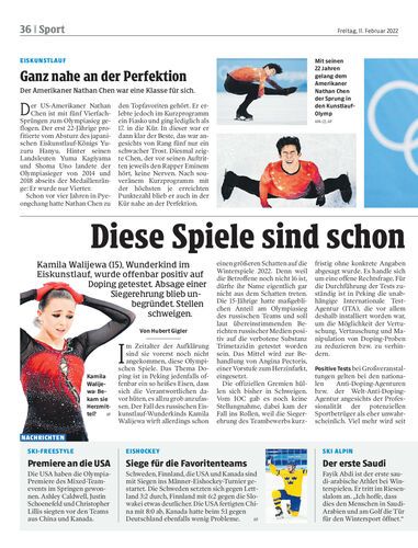 Kamila Walijewa (15), Wunderkind im Eiskunstlauf, wurde offenbar positiv auf Doping getestet. Absage einer Siegerehrung blieb unbegründet. Stellen schweigen.
