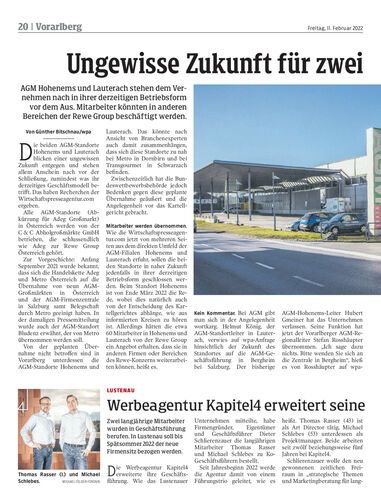 AGM Hohenems und Lauterach stehen dem Vernehmen nach in ihrer derzeitigen Betriebsform vor dem Aus. Mitarbeiter könnten in anderen Bereichen der Rewe Group beschäftigt werden.