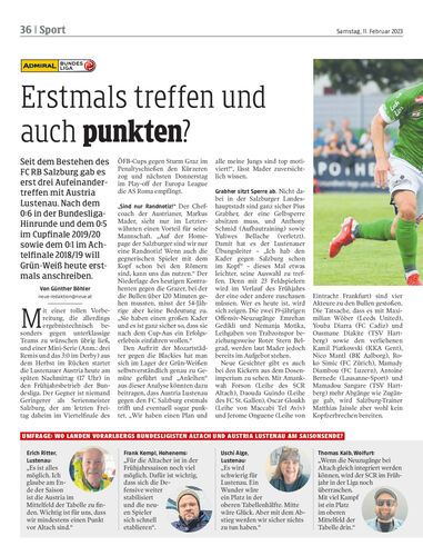 Seit dem Bestehen des FC RB Salzburg gab es erst drei Aufeinandertreffen mit Austria Lustenau. Nach dem 0:6 in der Bundesliga-Hinrunde und dem 0:5 im Cupfinale 2019/20 sowie dem 0:1 im Achtelfinale 2018/19 will Grün-Weiß heute erstmals anschreiben.