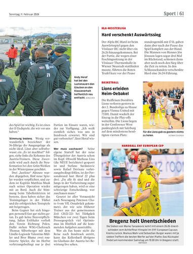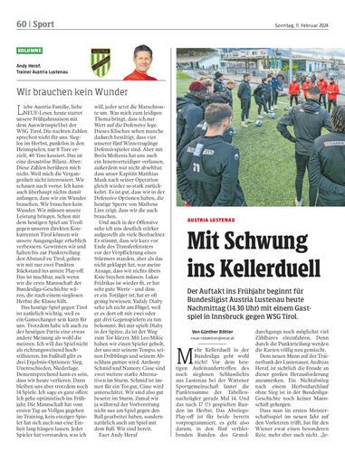 Der Auftakt ins Frühjahr beginnt für Bundesligist Austria Lustenau heute Nachmittag (14.30 Uhr) mit einem Gastspiel in Innsbruck gegen WSG Tirol.