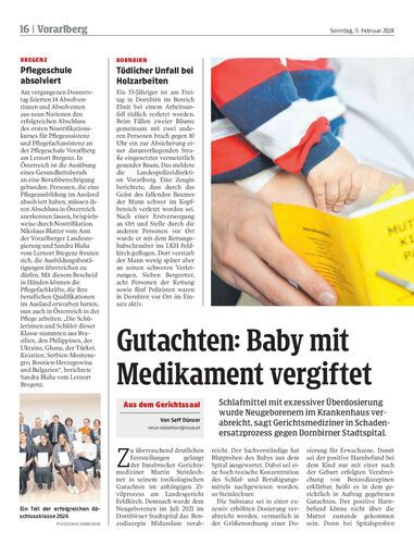 Schlafmittel mit exzessiver Überdosierung wurde Neugeborenem im Krankenhaus verabreicht, sagt Gerichtsmediziner in Schadenersatzprozess gegen Dornbirner Stadtspital.