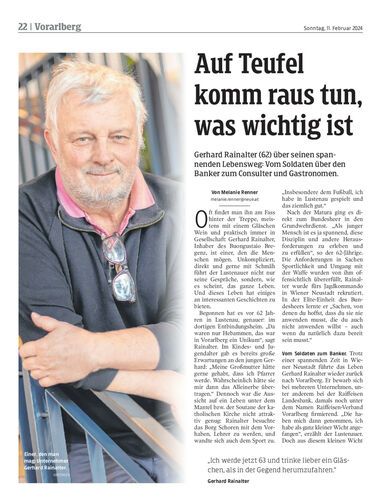 Gerhard Rainalter (62) über seinen spannenden Lebensweg: Vom Soldaten über den Banker zum Consulter und Gastronomen.