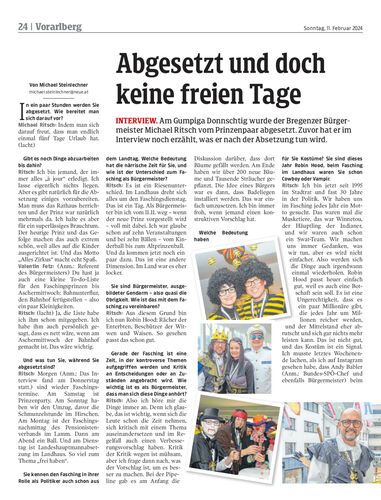 Interview. Am Gumpiga Donnschtig wurde der Bregenzer Bürgermeister Michael Ritsch vom Prinzenpaar abgesetzt. Zuvor hat er im Interview noch erzählt, was er nach der Absetzung tun wird.