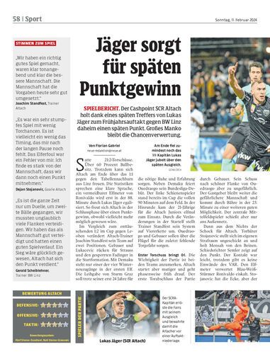 Spielbericht. Der Cashpoint SCR Altach holt dank eines späten Treffers von Lukas Jäger zum Frühjahrsauftakt gegen BW Linz daheim einen späten Punkt. Großes Manko bleibt die Chancenverwertung.