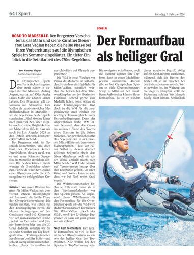 Road To Marseille. Der Bregenzer Vorschoter Lukas Mähr und seine Kärntner Steuerfrau Lara Vadlau haben die heiße Phase bei ihren Vorbereitungen auf die Olympischen Spiele im Sommer eingeläutet. Ein tiefer Einblick in die Detailarbeit des 470er-Segelduos.
