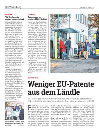 Vorarlberger Unternehmen dennoch weiterhin im österreichischen Spitzenfeld, was europäische Patentanmeldungen betrifft.