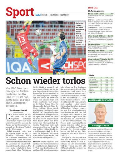 Vor 1260 Zuschauern spielte Austria Lustenau bei BW Linz 0:0. Es ist das dritte Spiel in Folge ohne Lustenauer Torerfolg.