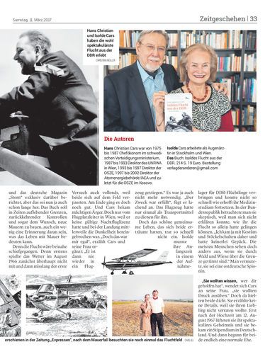 Hans Christian Cars schmiedete einen waghalsigen Plan, um mit seinem großen Schwarm Isolde zusammenzuleben. Es wurde die spektakulärste Flucht aus der DDR. Darüber hat er ein Buch geschrieben. Von Ingo Hasewend