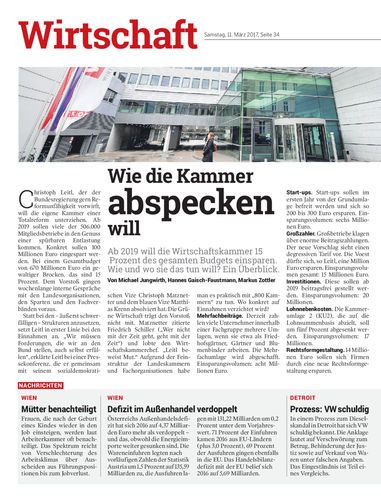 Ab 2019 will die Wirtschaftskammer 15 Prozent des gesamten Budgets einsparen. Wie und wo sie das tun will? Ein Überblick. Von Michael Jungwirth, Hannes Gaisch-Faustmann, Markus Zottler