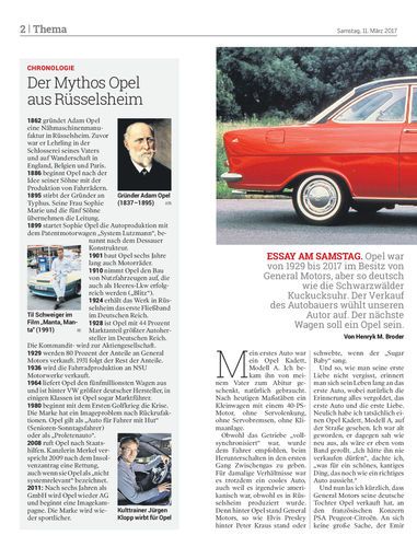 ESSAY am samstag. Opel war von 1929 bis 2017 im Besitz von General Motors, aber so deutsch wie die Schwarzwälder Kuckucksuhr. Der Verkauf des Autobauers wühlt unseren Autor auf. Der nächste Wagen soll ein Opel sein. Von Henryk M. Broder