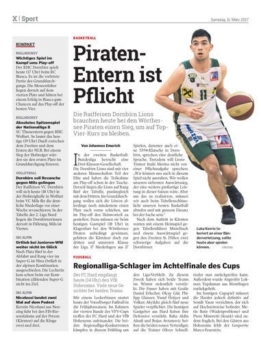 Die Raiffeisen Dornbirn Lions brauchen heute bei den Wörthersee Piraten einen Sieg, um auf Top-Vier-Kurs zu bleiben.
