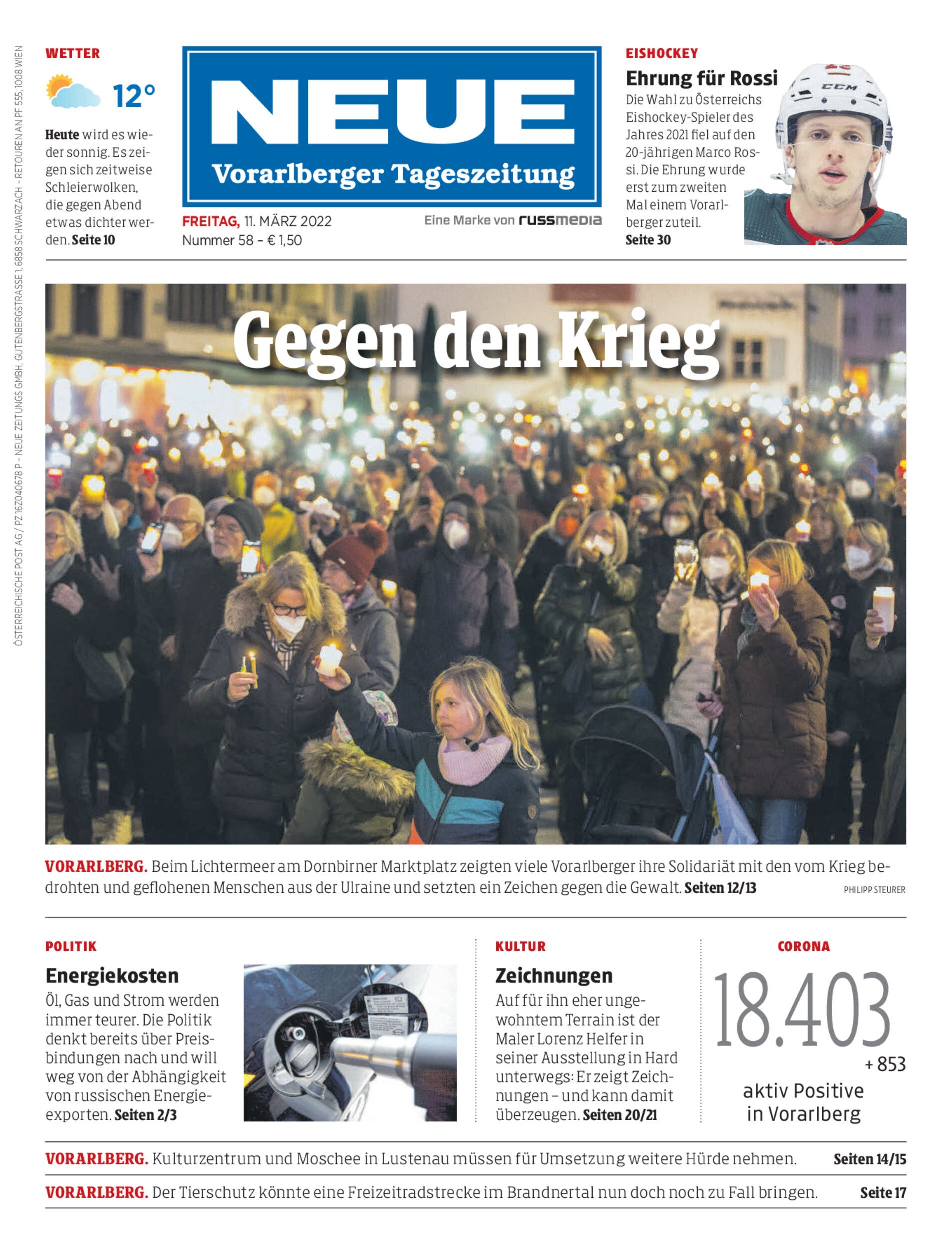 Großer Andrang herrschte am Donnerstagabend beim Lichtermeer gegen den Krieg in Dornbrin.