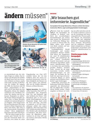 EuropaQuiz für junge Menschen. Wissen schützt die demokratischen Werte, sagt Landtagspräsident Sonderegger.