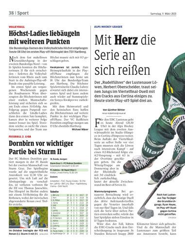 Der „Rudelführer“ der Lustenauer Löwen, Herbert Oberscheider, traut seinen Jungs im Viertelfinal-Duell mit den Cracks aus Cortina einiges zu. Heute steht Play-off-Spiel drei an.