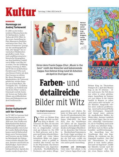 Unter dem Frank-Zappa-Zitat „Music is the best“ stellt der Künstler und bekennende Zappa-Fan Helmut King rund 50 Arbeiten ab April in Stuttgart aus.