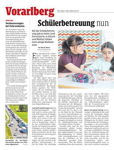 Bei der Schülerbetreuung gab es beim Land Fortschritte, in Altach und Wolfurt fehlen noch einige Maßnahmen.