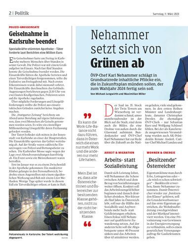 ÖVP-Chef Karl Nehammer schlägt in Grundsatzrede inhaltliche Pflöcke ein, die in Zukunftsplan münden sollen, der zum Wahljahr 2024 fertig sein soll. Von Michael Jungwirth und Maximilian Miller