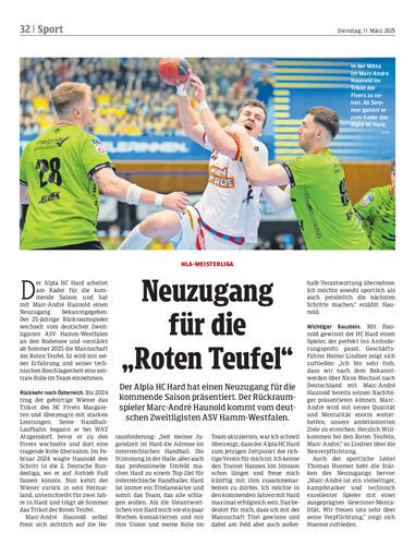 Der Alpla HC Hard hat einen Neuzugang für die kommende Saison präsentiert. Der Rückraumspieler Marc-André Haunold kommt vom deutschen Zweitligisten ASV Hamm-Westfalen.