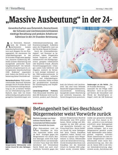 Gewerkschaften aus Österreich, Deutschland, der Schweiz und Liechtenstein kritisieren niedrige Bezahlung und prekäre Arbeitsverhältnisse in der 24-Stunden-Betreuung.