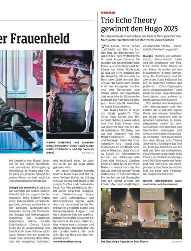 Das Ensemble der Hochschule der Künste Bern gewinnt den Nachwuchs-Wettbewerb der Montforter Zwischentöne.