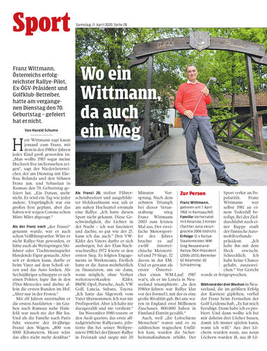 Franz Wittmann, Österreichs erfolgreichster Rallye-Pilot, Ex-ÖGV-Präsident und Golfklub-Betreiber, feiert am Dienstag den 70. Geburtstag nicht. Er begeht ihn.