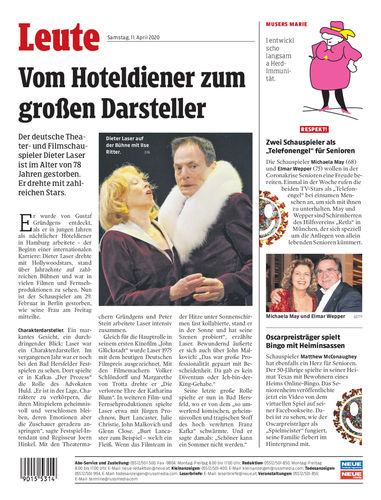 Der deutsche Theater- und Filmschauspieler Dieter Laser ist im Alter von 78 Jahren gestorben. Er drehte mit zahlreichen Stars.